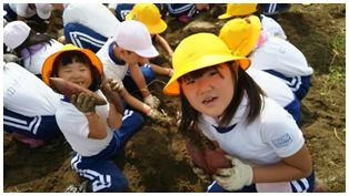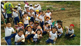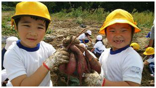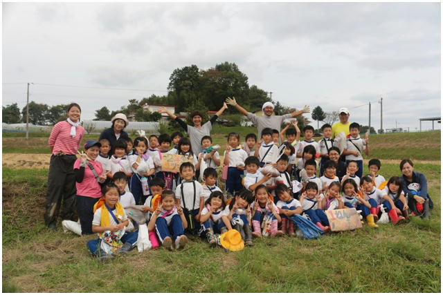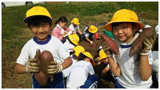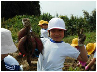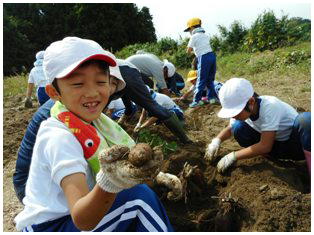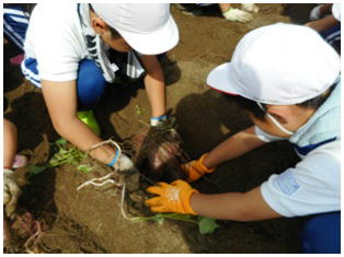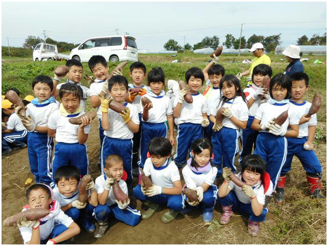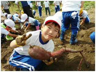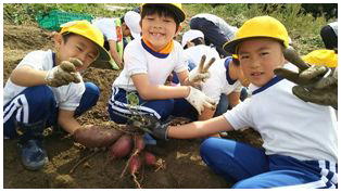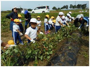 待ちに待った1・2ねんせいのサツマイモの収穫です。これまでお世話になった農家さんとともに収穫しました。大きく育ったサツマイモを手にみんな笑顔いっぱいでした。最後にみんなで記念撮影をしました。
