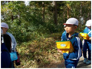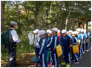 母畑湖周辺で森の案内人の方にご協力いただき,森林学習を行いました。植物の名前などたくさんのことを学んできました。