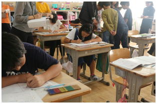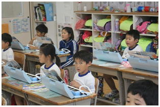 5年生の算数の授業の様子です。今日の授業は,校内の先生達の研究会ということでたくさんの先生達が見に来ていました。子ども達は緊張することなく普段どおりの姿で授業を受けていました。