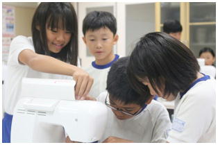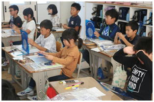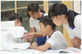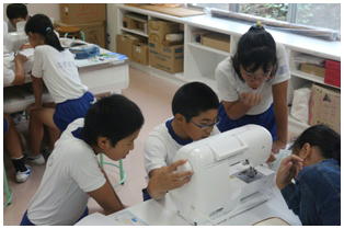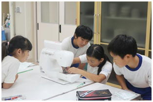5年生の家庭科の授業では,ミシンの使い方について学習しました。みんな楽しそうです。
