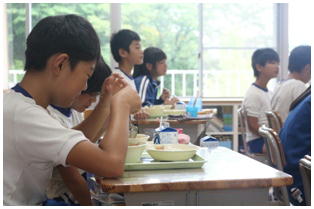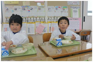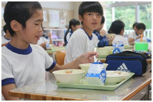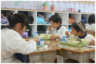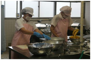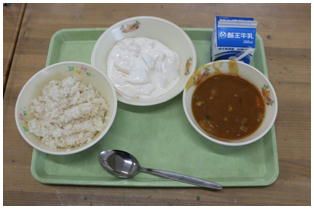 今日の献立は,「麦ごはん」「トマトのカレー」「牛乳」「ヨーグルトあえ」でした。給食室では,バナナの皮をむいてヨーグルトあえを調理しているところです。2年生と6年生の教室をのぞくと,みんな美味しそうにいただいていました。(なぜか給食の様子を紹介するときはカレーの時が多くなってしまいます?)