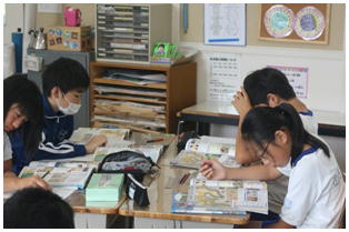 江戸時代の蘭学や国学について、版ごとに話し合いながら調べ学習をしていました。