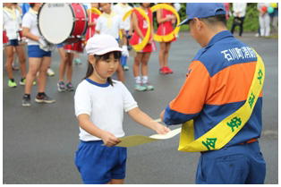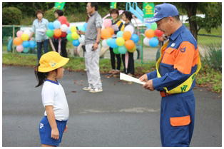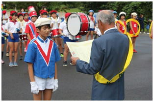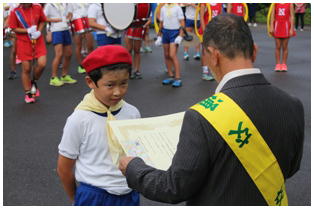 鼓笛パレードに先立ち、防犯標語の表彰が行われました。