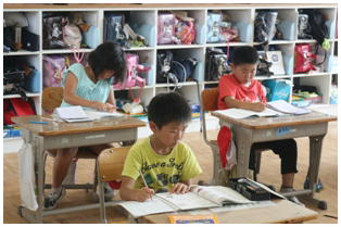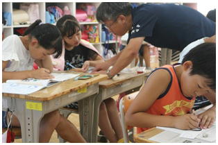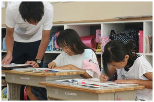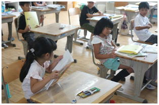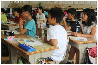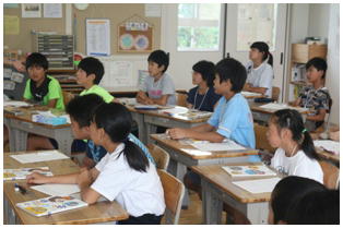3年生と6年生の授業の様子です。3年生は、夏休みに向けての準備、6年生は、外国語活動の授業の様子です。