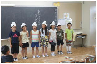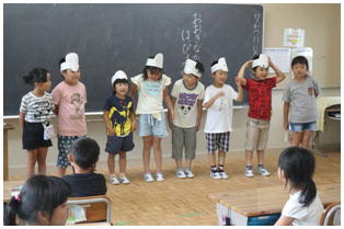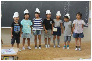 2018年7月11日 14時24分1年生が、国語で学習した「おおきなかぶ」を劇にして発表会を行いました。3つのグループに分かれて、みんな一生懸命に役を演じることができました。また、教科書を読む係の児童もたいへん上手に読んでいました。