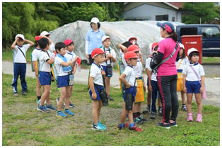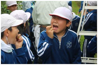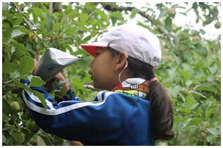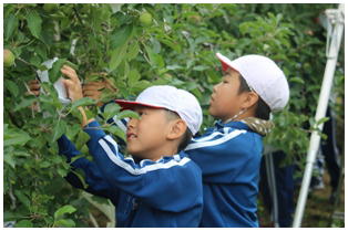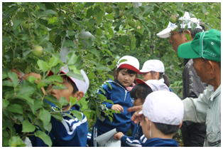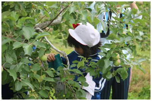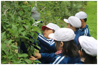 いつもお世話になっている果樹農家さんにおいて、今日はりんごの実に袋かけを教わり体験しました。中々難しかったですが、とりあえず終了しました。台風で飛ばされないといいですね。児童の中には、最後に実すぐりをしたまだ成長していないりんごの実をかじって、その渋さに顔をしかめていました。