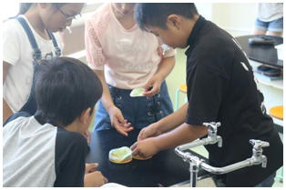 6年生の理科の授業の様子です。日光とデンプンの関係について実験を通して学習しています。