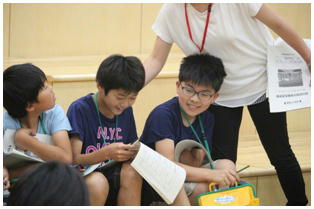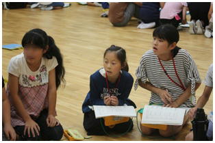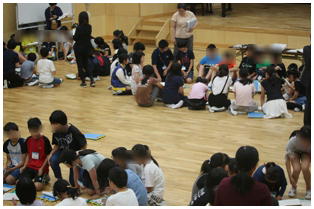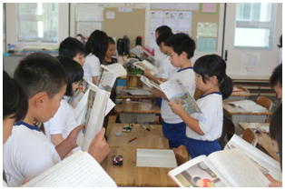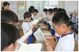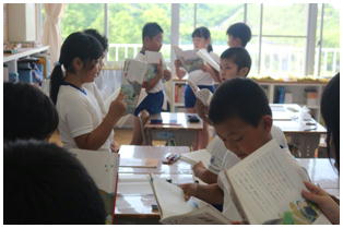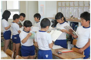 4年生の国語の授業です。グループに分かれて音読の練習のようです。