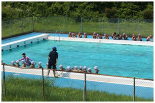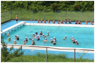 まだ梅雨も明けていないのに、昨日今日ととても暑い日が続いています。児童は、暑さとともに水泳の学習を楽しみにして、水の中で歓声をあげています。