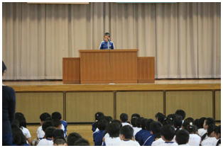 明日、石川町共同福祉施設で行われる石川町少年の主張大会に、本校の児童の代表として発表する児童のリハーサルが、全校児童を前にして行われました。とても緊張していたようですが、大きな声で発表できました。午前10時から始まります大会での立派な発表を期待しています。