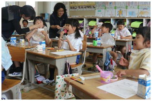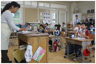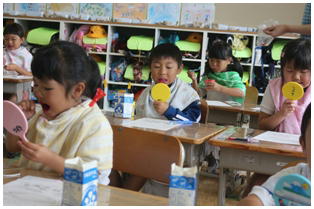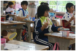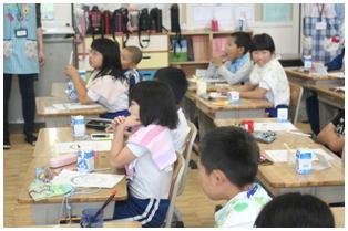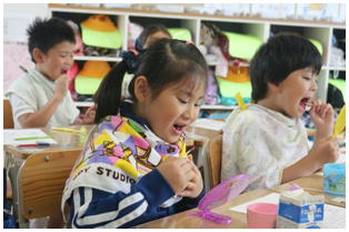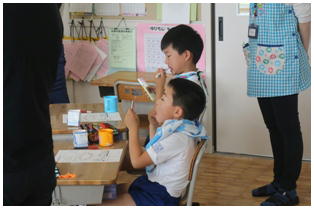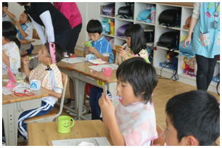 いよいよしか教室も最終日となりました。今回は、低学年(1・2年生)で実施しました。上手に磨けていないところはないかなど歯を大切にできるように学習しました。