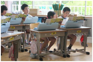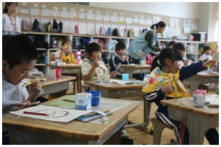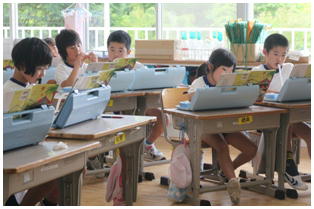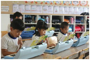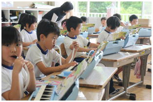 二年生の音楽の授業です。今日は、鍵盤ハーモニカの練習です。一生懸命さが伝わってきます。