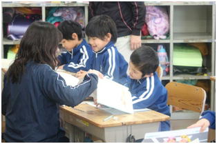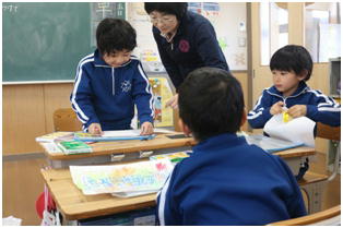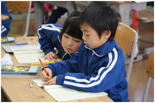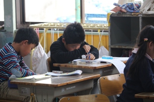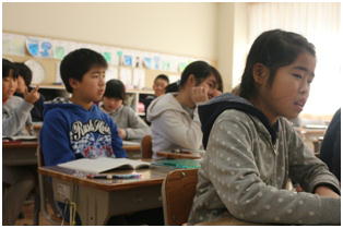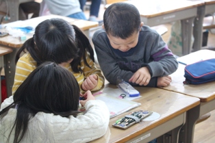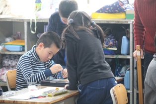 3年生の授業は算数です。一生懸命、コンパスを使っての学習です。真剣な表情です。