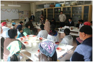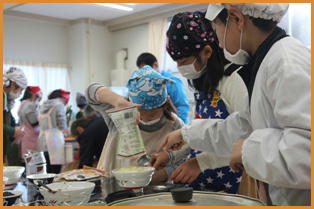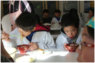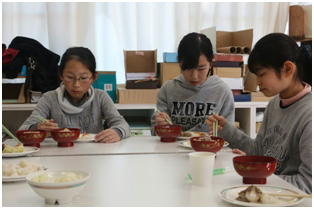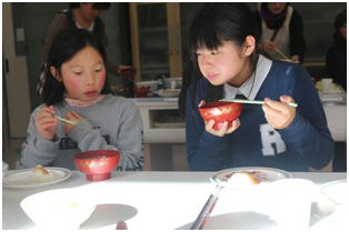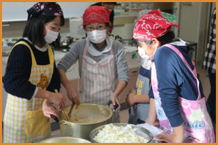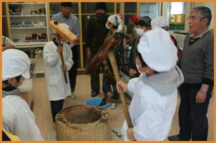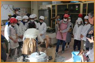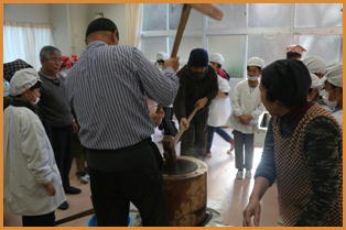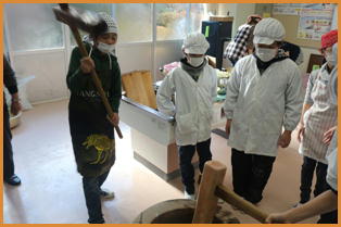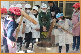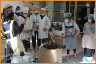 いよいよ収穫祭も大詰めです。つきたての餅をあんこやごま、汁などといっしょにいただきます。お手伝いいただいた保護者や地域のみなさんありがとうございました。