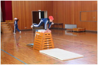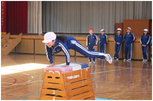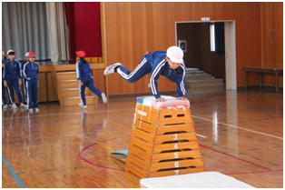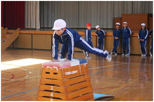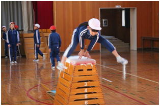 4年生の授業は、体育で跳び箱の授業でした。みんな颯爽と跳んでいました。