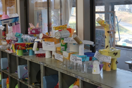 先日図工の時間に作った1年生の作品です。いろいろな箱を使って動物を作ってみました。とれもそれぞれの動物の特徴をよくつかんで楽しい作品ができあがりました。