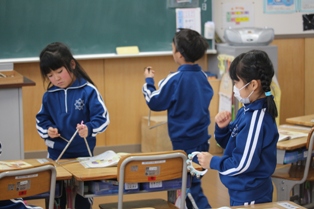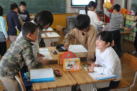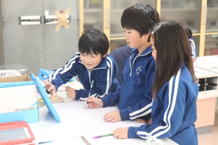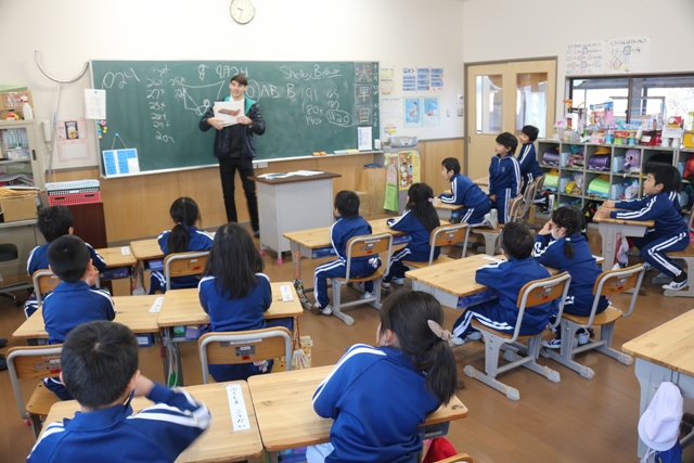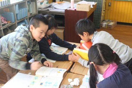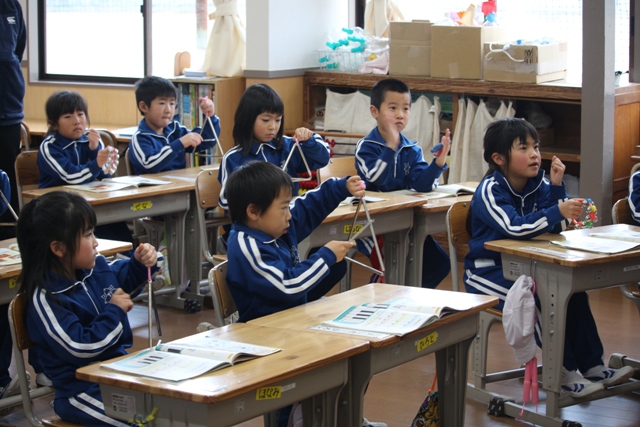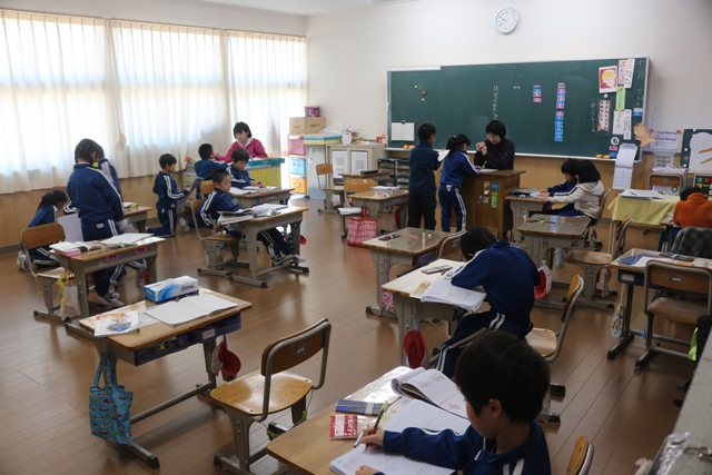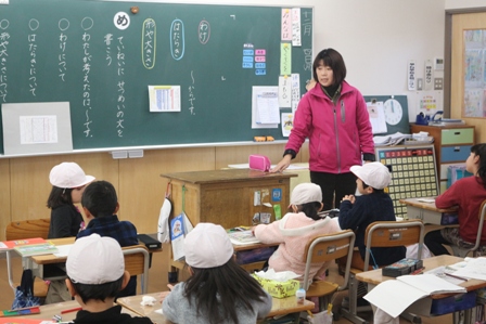 今日は、たいへん寒い朝でした。でも、元気の登校してきた子ども達は一生懸命授業に取り組んでいます。2校時目1年生は国際理解の授業、2年生は算数の授業です。