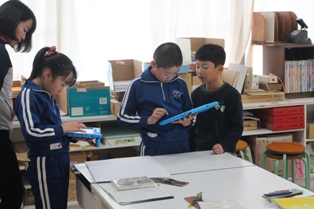 4年生の社会の授業の様子です。福島県の発展に尽くした人物についてタブレットを使って班ごとに調べたり,写真を撮ったりしてまとめています。