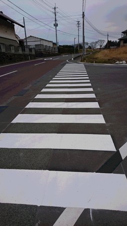 昨年度末に、国道118号線から学校北側を通る県道に通じる道路が完成していましたが、横断歩道が設置されていませんでした。しかし、昨日地域の関係者の皆様のおかげで無事設置されました。横断歩道ができてもこれからさらに児童ひとりひとりが交通ルールを守って交通事故防止に努めるよう指導していきます。