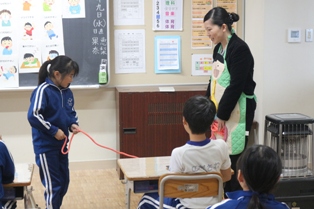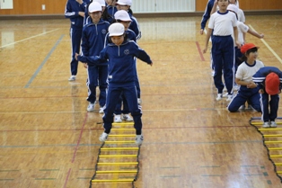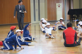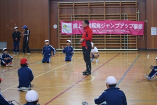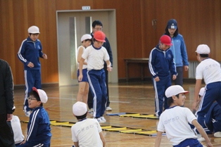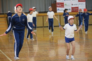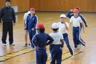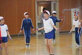 県から陸上出前講座として陸上関係の講師の先生が本校にやってきました。縄跳びなどを使って陸上の基礎になるところを4、5年生に指導いただきました。みんな楽しそうに活動していました。