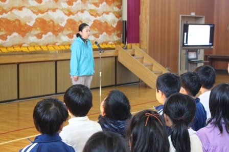 2017年10月27日 14時17分10月にはいてから野木沢小学校に校舎内外の整理や給食のお手伝いなどいろいろな形でお世話になる支援員の「加藤祐美」さんが着任しましたので、子ども達に紹介しました。