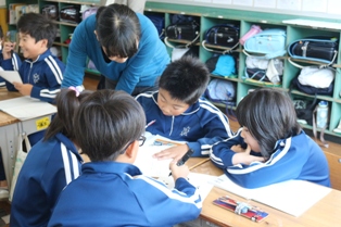 2017年10月27日 14時22分今年度、5回目の校内授業研究会が3年生で行われました。小数の足し算引き算の学習でしたが、みんなで互いに説明したり教えあいながら活発に学習に取り組んでいました。