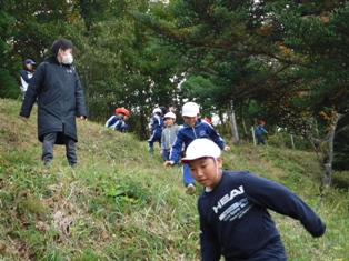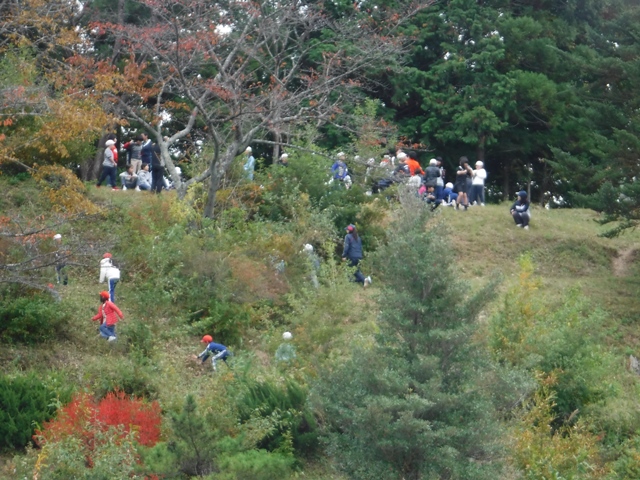 2017年11月1日 14時39分 耐震工事中で立ち入りができなくなっている希望ヶ丘に、今年二度目の開放日がやってきました。工事を中断していただき、希望ヶ丘で昼食の弁当を食べ、そのあと児童達は、丘を元気に駆け回っていました。工事終了後の来年度は、またこんな姿が頻繁に見られることでしょう。