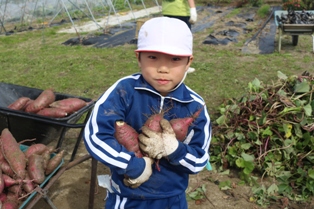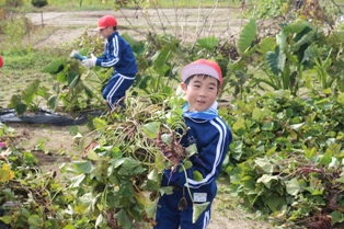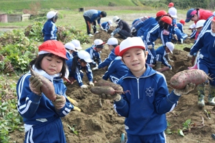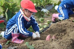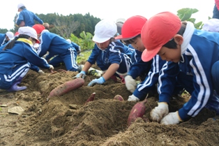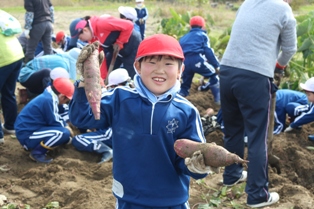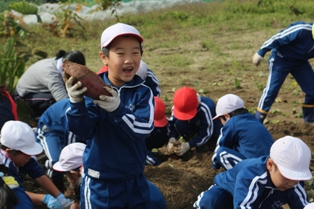 2017年11月2日 12時53分 1・2年生が、春に植えたサツマイモの収穫を行いました。サツマイモは、想像以上に大きくなっているものもあり一生懸命、楽しく収穫できました。収穫したサツマイモは、各自家庭に持ち帰ったり、学校で全校生みんなでいただきます。お世話になった方々ありがとうございました。