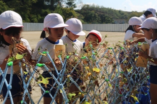 月曜日3時間目の授業です。特に1年生は、1学期から育ててきたアサガオの種を取っていました。