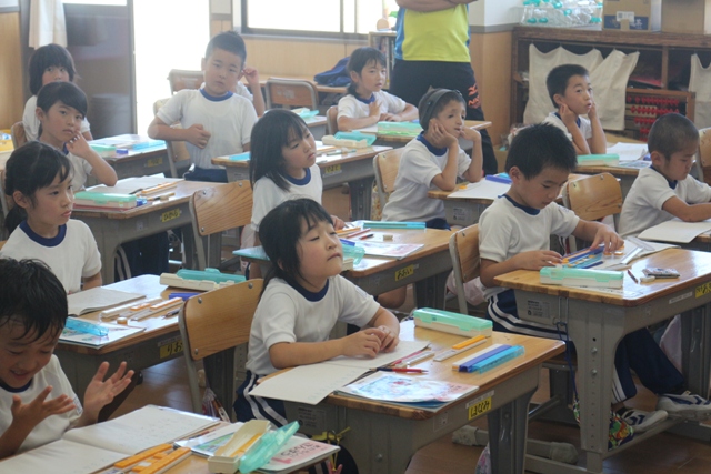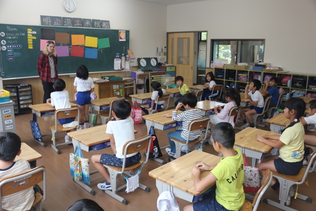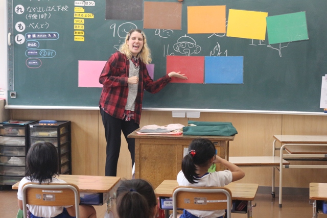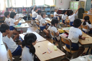 ローズマリー先生による2年生の国際理解教育の授業の様子です。みんな楽しそうに授業を受けています。