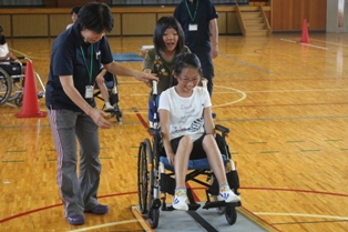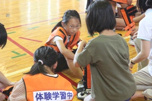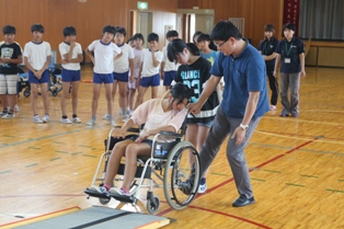 5年生が、高齢者体験グッズと車いすを使って障がい者・高齢者理解教室を行いました。体験を通して障がい者や高齢者が、いかにたいへんな生活を送っているのか少しでも感じ取ってもらえればと思います。