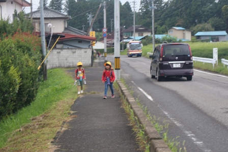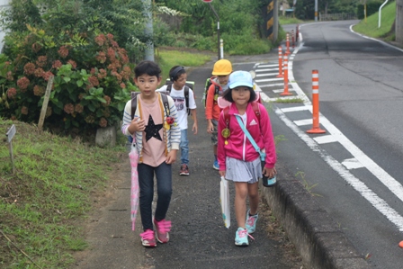 すっきりしない天気ですが、そんなことお構いなしに、子ども達は、今日も交通事故に気をつけて元気に登校してきました。
