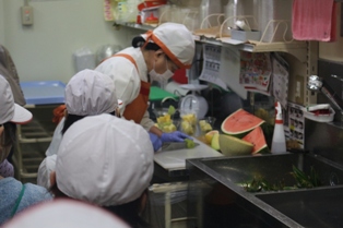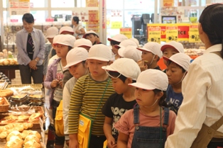 4年生が、社会科の見学学習でヨークベニマル石川店に出かけてきました。普段買いもので見かけている場所だけでなく、商品が保管してあるところや総菜や肉を切り分けているところなどのバックヤードも見学させていただきました。果物を切っているところでは「うまそー」との声も上がりました。