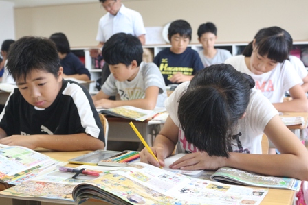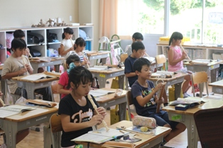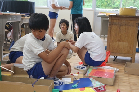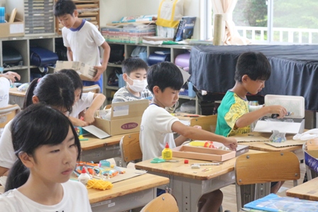 2017年9月12日 10時59分 5・6年生の午前中の授業の様子です。5年生は社会で、織田信長、豊臣秀吉、徳川家康について調べていました。5年生は図画工作の授業でいろいろ工夫して作品を作っていました。