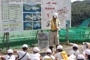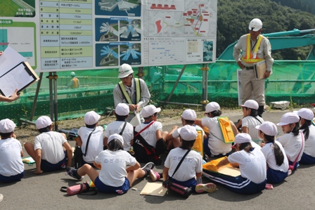 四年生が、千五沢ダムの見学に行って来ました。今回のダム工事について説明を受けた後、今年の夏の貯水率はどうだったかなどいろいろ質問をしていました。最後に事務所の2Fからダム全体を見学しました。