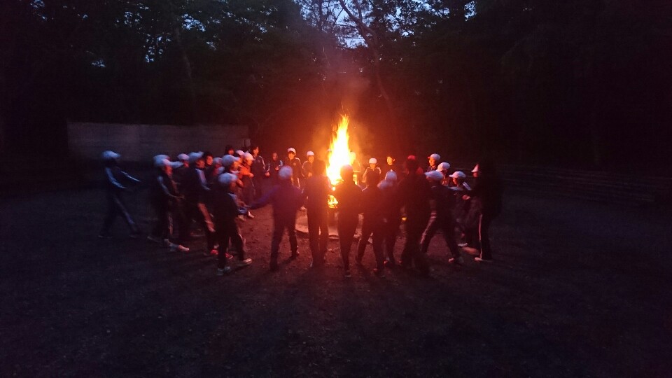 夜もふけてきました。キャンプファイアでのダンスの様子です。