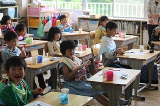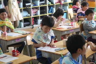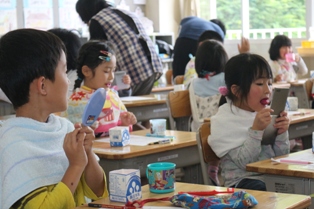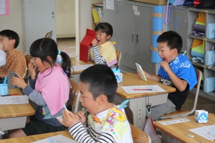 本日の歯科教室は、最終日1、2年生の番です。昨日の夜、磨くのを忘れたという児童もいましたが、今日虫歯について学んだことをもとに,今日からは忘れず磨くことでしょう。