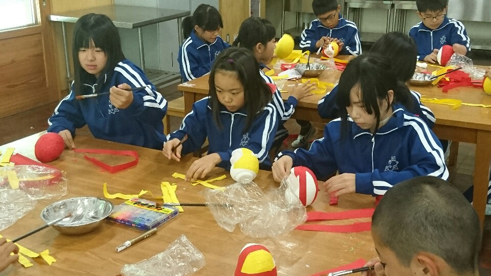 日程を変更したため午後は、だるま作り体験中です。