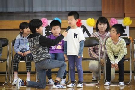 4月17日(月)1年生がはやく学校に慣れるようにと、2~6年生が新入生を迎える会を開いてくれました。はじめに1年生一人ひとりが自己紹介を行い、そのあと1年生対6年生の輪くぐり大会、ジェンカを行い楽しい時間を過ごすことができました。