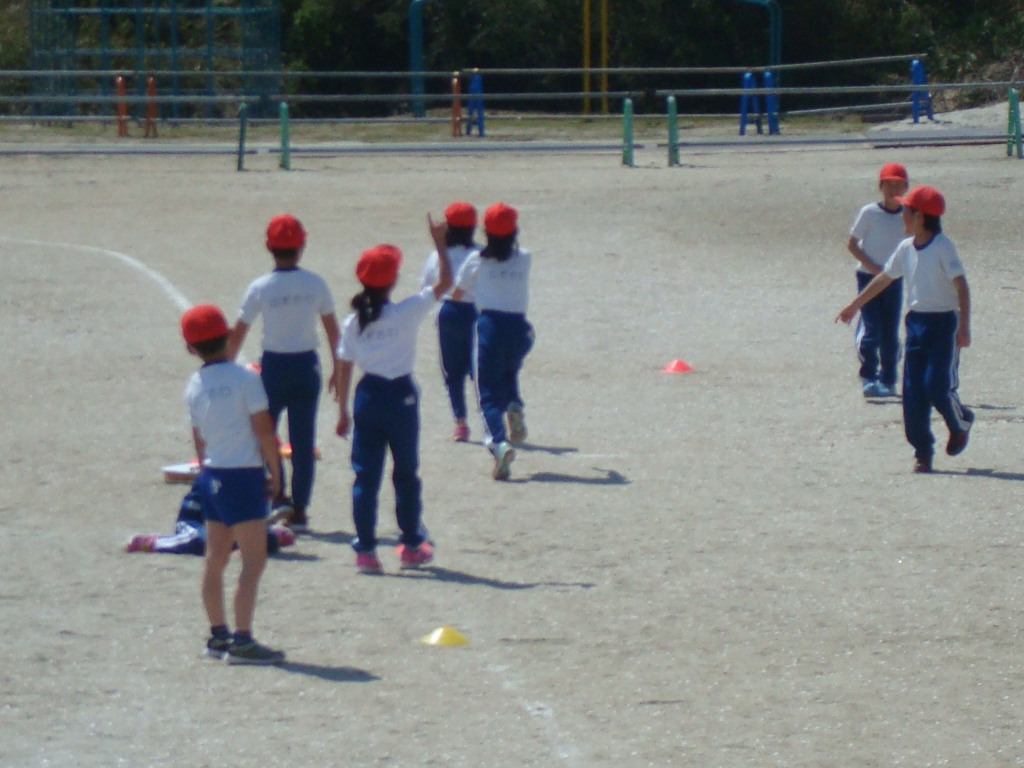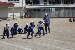 校庭では、3年生が体育の授業で、運動会の練習もかねて徒競走に取組んでいます。