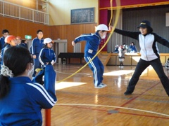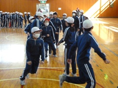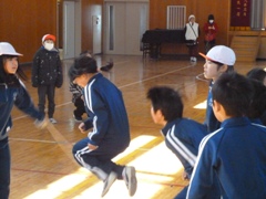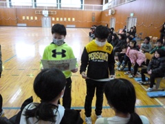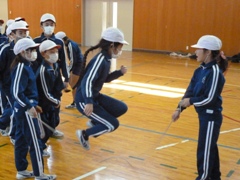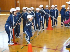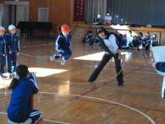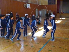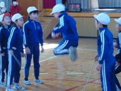2月17日(金)、延期となっていました1・2・5・6年生の「なわとび記録会」を、1年生と6年生がいっしょに、2年生と5年生がいっしょに実施しました。個人は二重跳び、団体は長縄跳びに挑戦しました。特に長縄跳びではどの学年も「one for all. all for one.」、すばらしい頑張りが見られました。