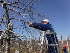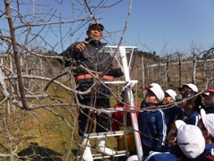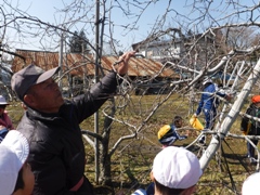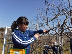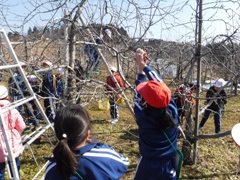2月16日(木)、3年生が今年度最後のりんご園での活動を行いました。今日はりんごの木の剪定です。相樂先生にご指導いただきながら丁寧に枝を見極めて切り落としました。春の準備です。