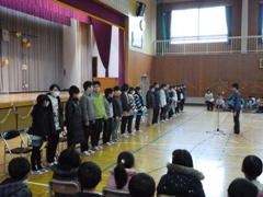 3月2日(木)、6年生を送る会を行いました。5年生が中心となり会を運営しました。また、1~4年生が楽しい企画を行い、6年生に感謝の気持ちを伝えました。1~5年生の6年生への気持ちが伝わるとても楽しい良い会になりました。会の中では、鼓笛隊の引継ぎ式も行われました。6年生のみなさん、本当にお世話になりました。いよいよ3週間後は卒業式です。在校生の感謝の気持ちを胸に、立派に巣立ってほしいと思います。