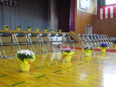 3月22日(水)、いよいよ明日、卒業式となりました。今日は、5年生の皆さんと先生方が心を込めて式場作りをしました。