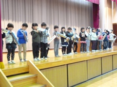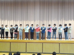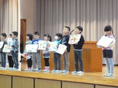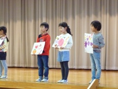11月28日(月)、発表集会をしました。今回は1年生の発表でした。一人一人とても元気に、学習の成果を発表することができました。