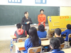 11月21日(月)、5年生の社会科で出前授業を受けました。来ていただいたのは、福島県理工専門学校の吉田校長先生と教務部長の佐藤先生でした。お二人から、自動車のエンジンの仕組みや、エアバッグの仕組みについてなど、分りやすく教えていただきました。ありがとうございました。