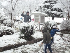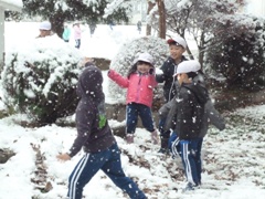 11月24日(木)、今朝方から降り出した雪で、野木沢はこの冬、初の積雪となっています。子どもたちも雪を楽しんでいました。
