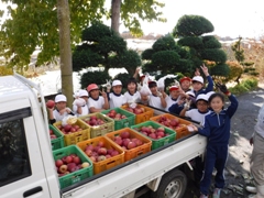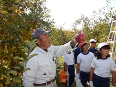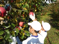 11月22日(火)、3年生がりんごの収穫をしました。これまでお世話になった相樂さんに感謝しながら収穫の喜びを味わいました。今年は、昨年に比べりんごの成育は良いということで、美味しそうなりんごがたくさんできました。全校生みんなで給食でいただく予定です。