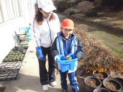 11月30日(水)、1~3年生が、6年生への感謝の気持ちを込めて「ビオラ」の苗を植木鉢に植えました。これらの花は、3月の卒業式に式場をきれいに飾る予定です。