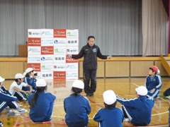 11月28日(月)、福島県の主催する「陸上王国福島ジャンプアップ事業」が本校で開催され、福島大学トラッククラブの菊田明博先生に、4,5年生がご指導いただきました。陸上競技にいたるの基礎の部分を分りやすく丁寧に楽しくご指導いただき、2時間という長い時間でしたが、あっという間に過ぎました。みんな集中して熱心に学ぶことができました。